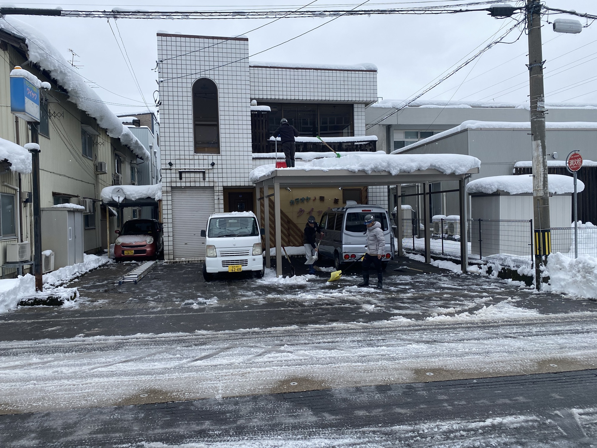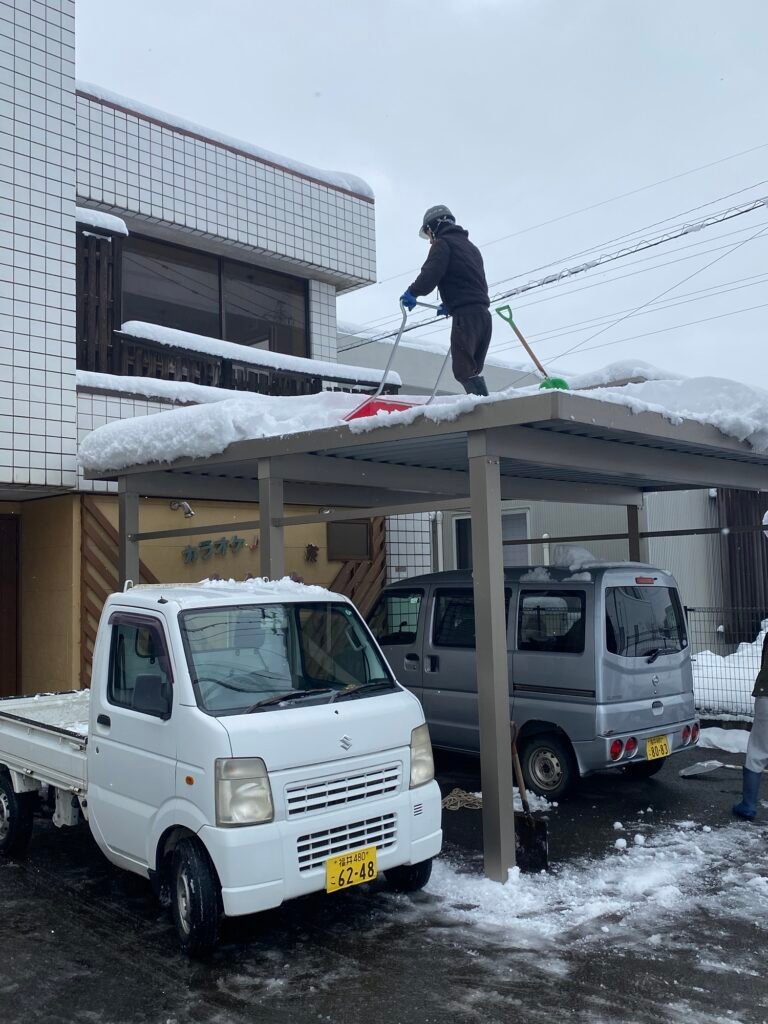 越前市のお客様から依頼をうけ、カーポート雪おろし、駐車場除雪を行いました。