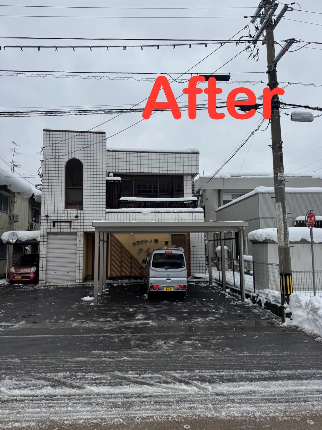 越前市のお客様からご依頼をいただき、カーポートの雪おろし作業を実施いたしました。ここ最近の積み重なった雪は、想像以上に重たく、カーポートへの負担も相当なものでした。