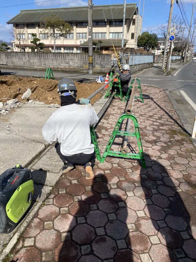 越前市現場. A型バリケード組立, 設置おこないました。