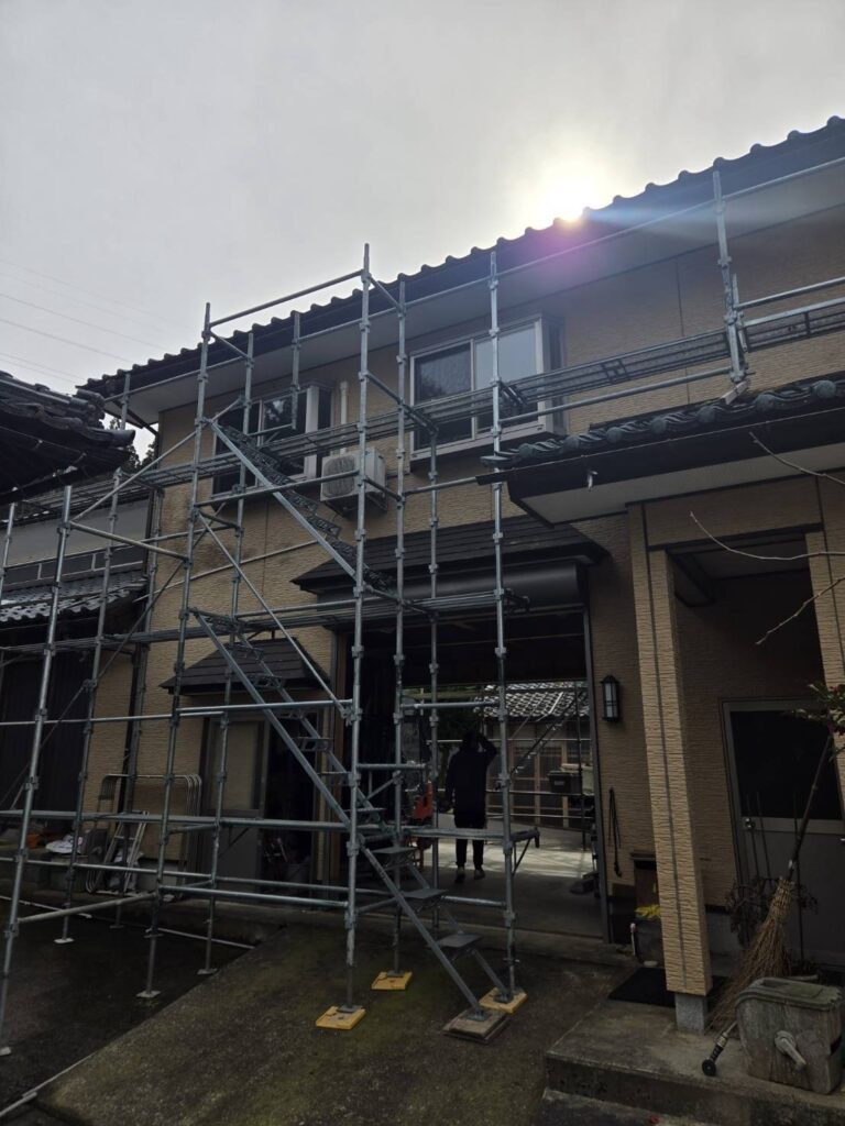 越前市雨樋交換工事用現場. 足場組立おこないました。