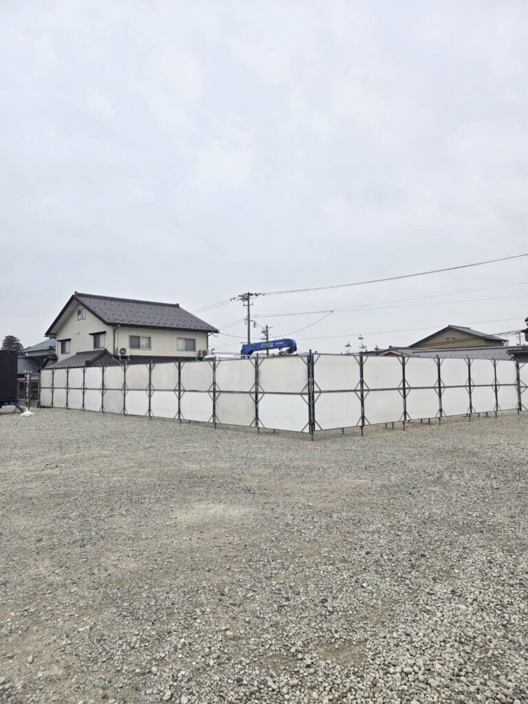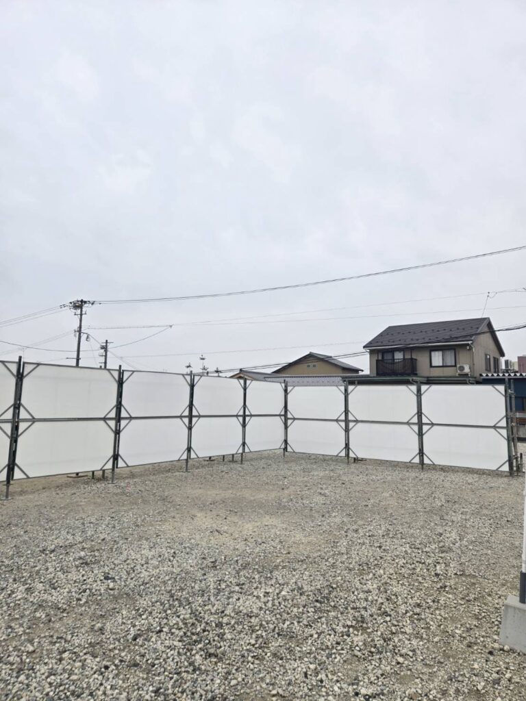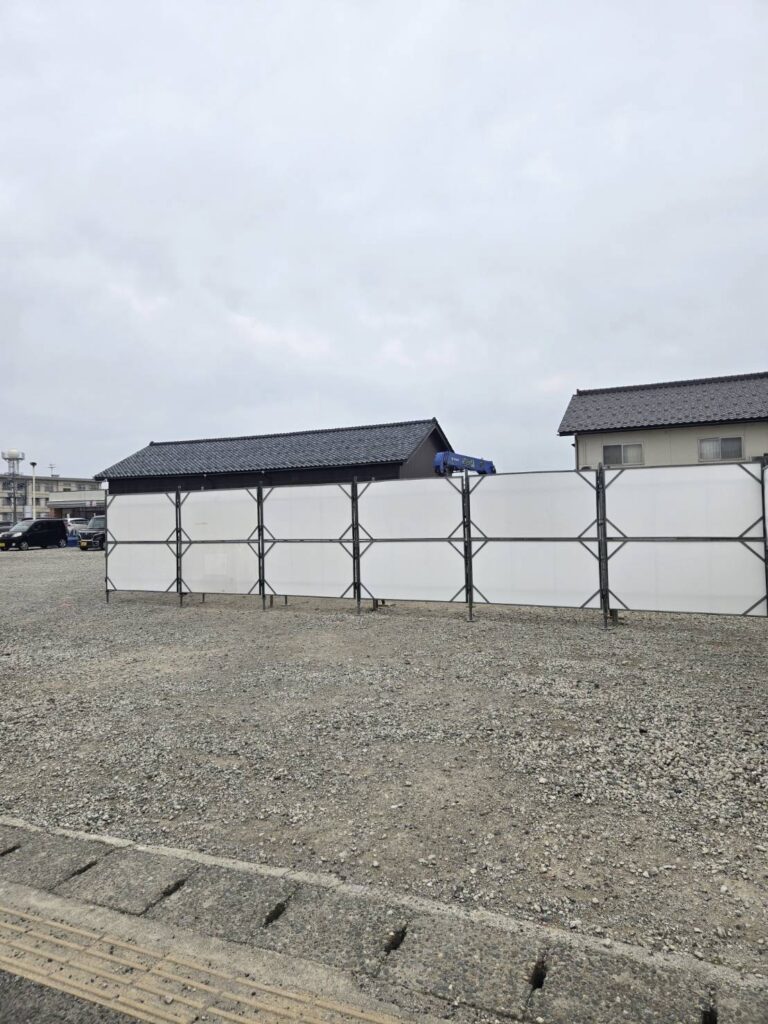 福井県鯖江市現場. 仮囲い組立おこないました。