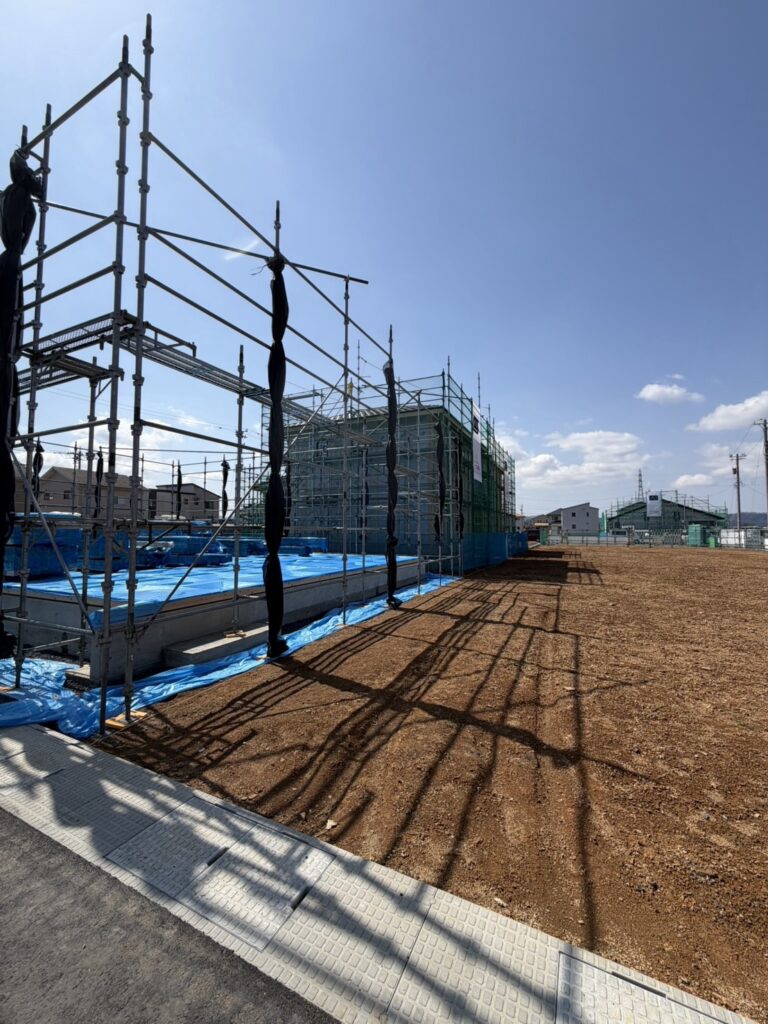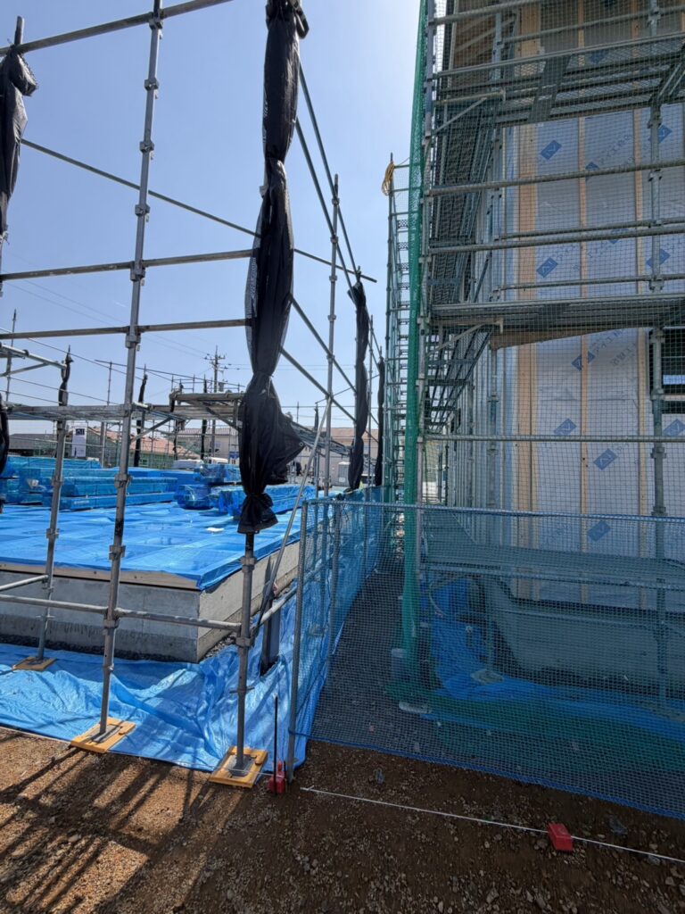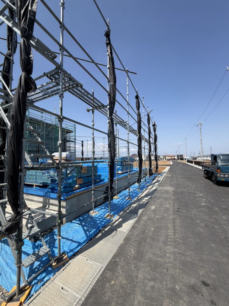 本日2棟目の先行足場、素早く作業を進め2時間で組立終了致しました。