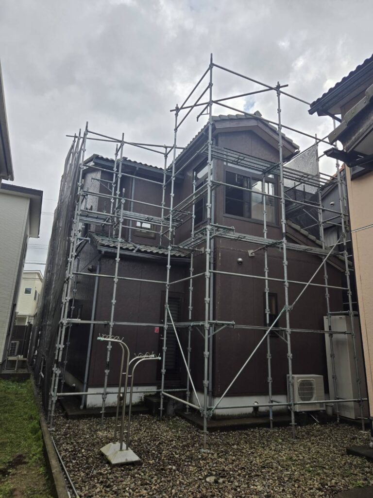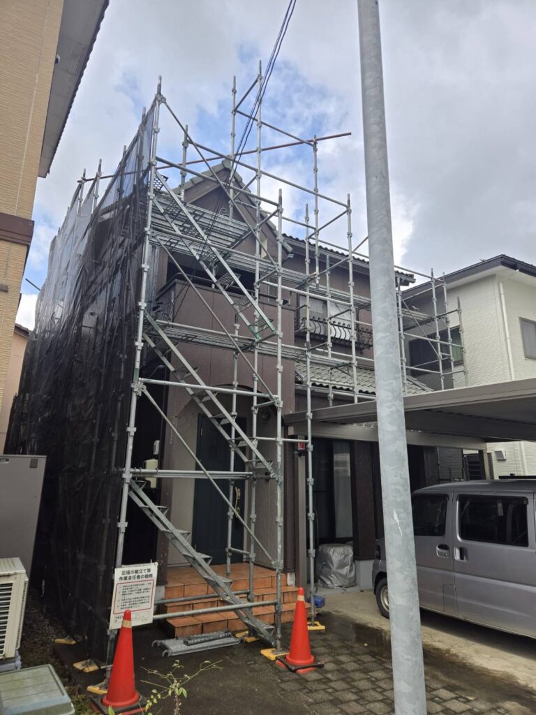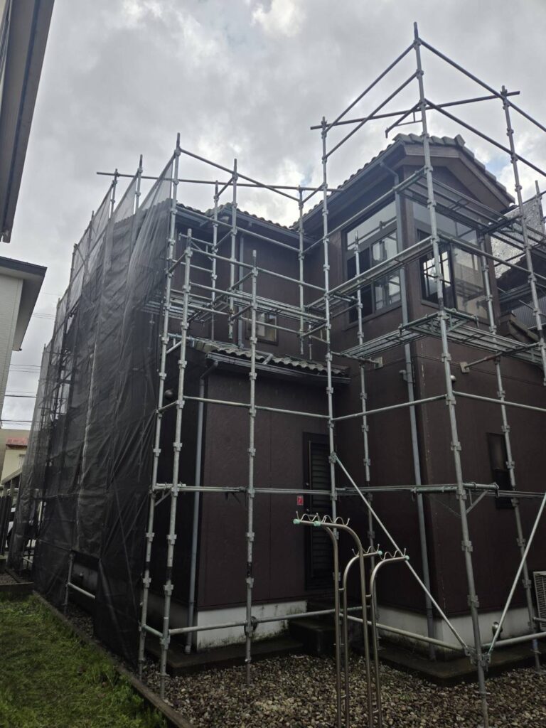 両隣の家に迷惑かからない様に、メッシュシートを2面はりました。