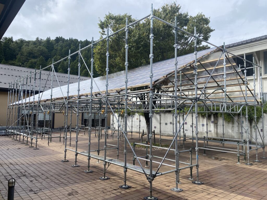 越前市某会社増築工事現場. 仮囲い組立おこないました。 杭を打込み足場控えをとりました。 A型バリケード設置もおこないました。
