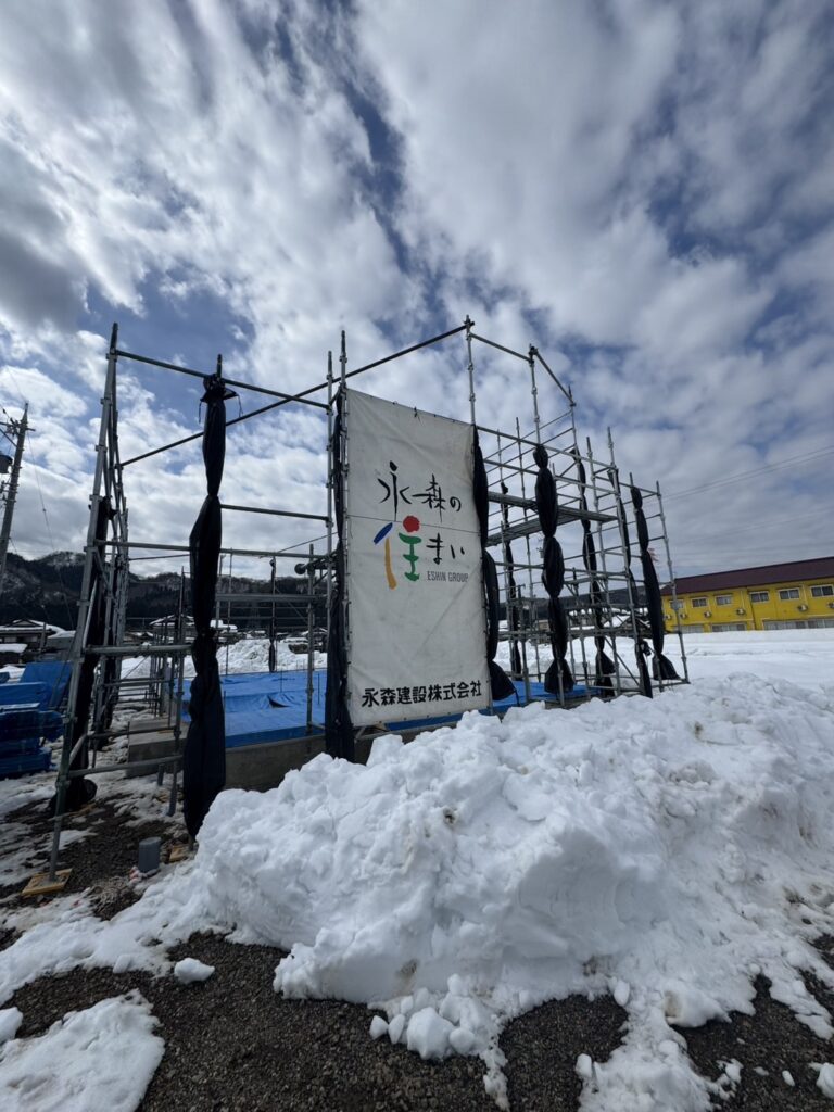 鯖江市某アパート改修工事現場. 足場組立おこないました。 外部と階段間内を組立ました。 一面敷地が狭い以外は組立やすい現場でした。
