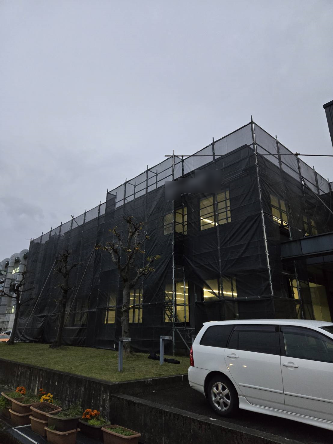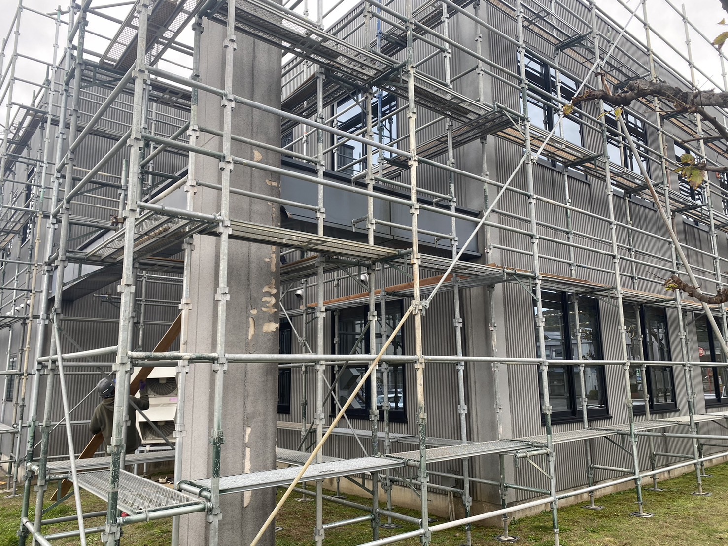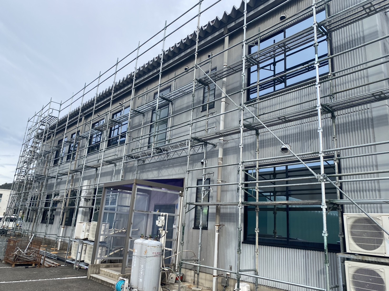 越前市 某会社事務所棟現場 外壁張替工事用足場
