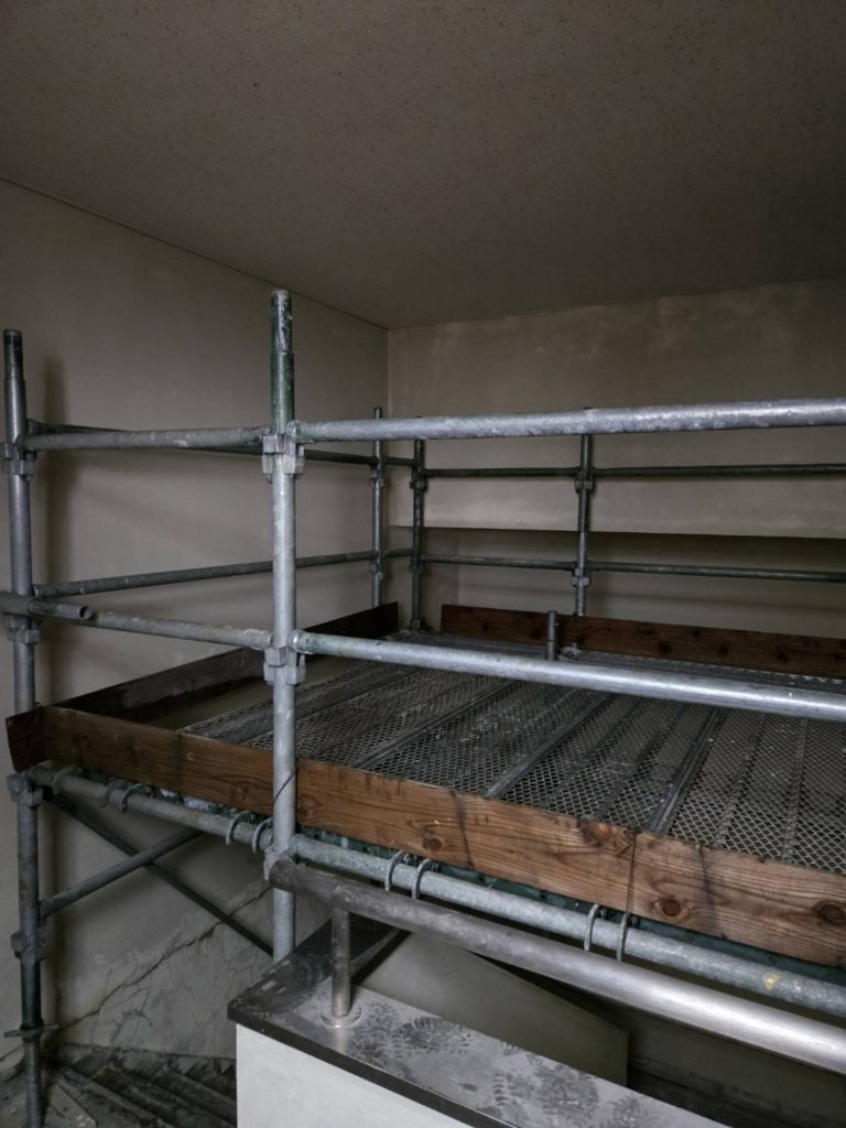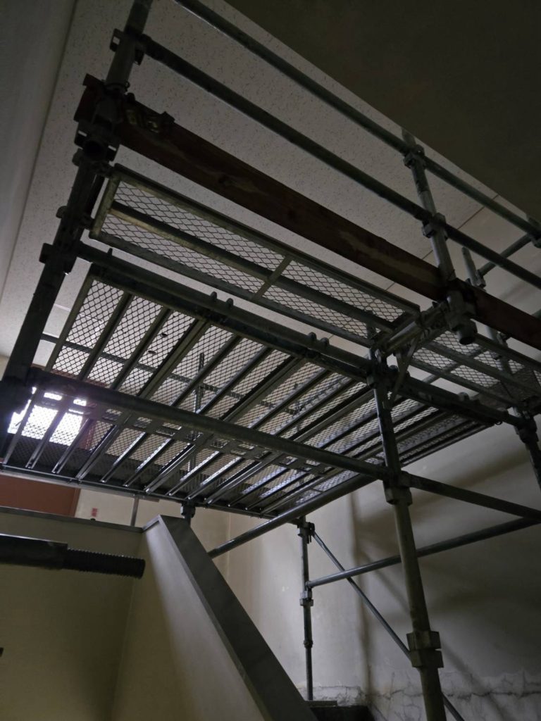 室内階段間足場。