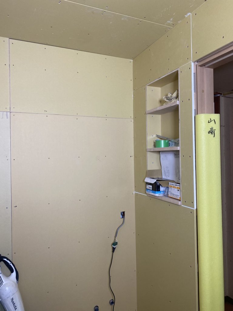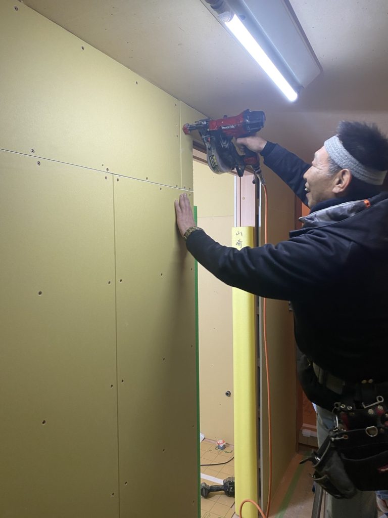 脱衣場, 廊下のボードを大工さんに、はっていただきました。