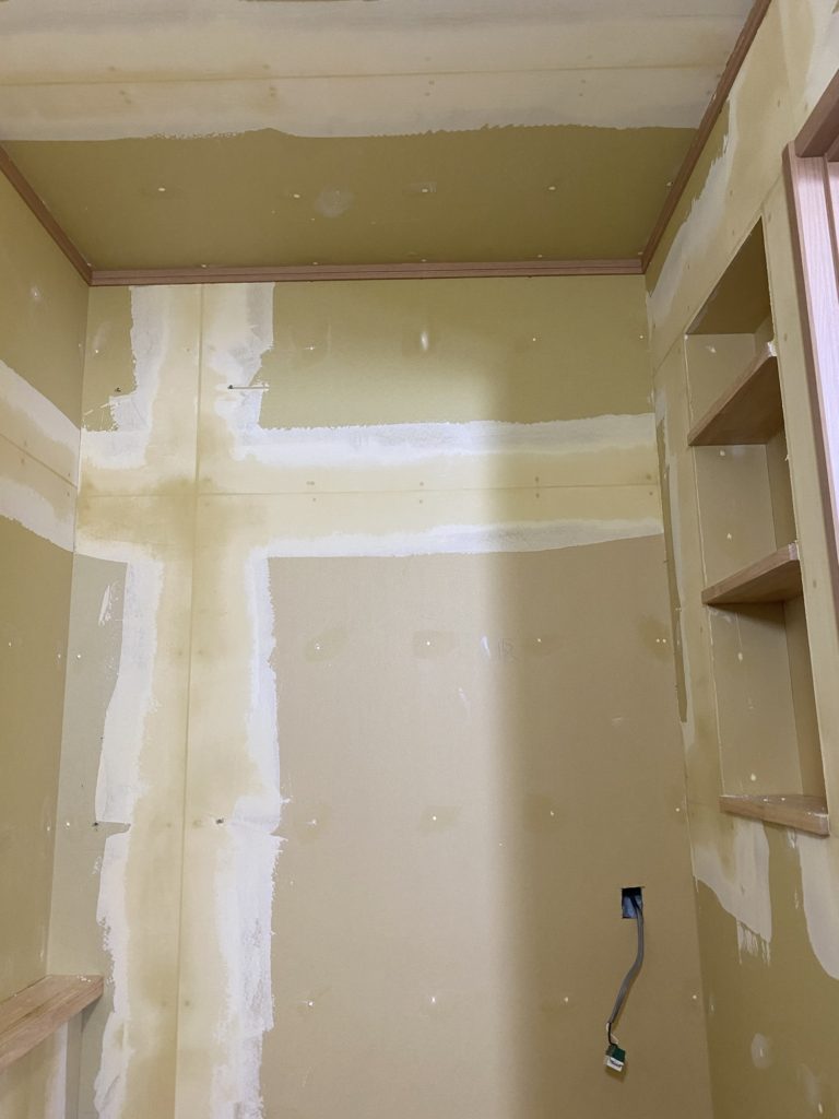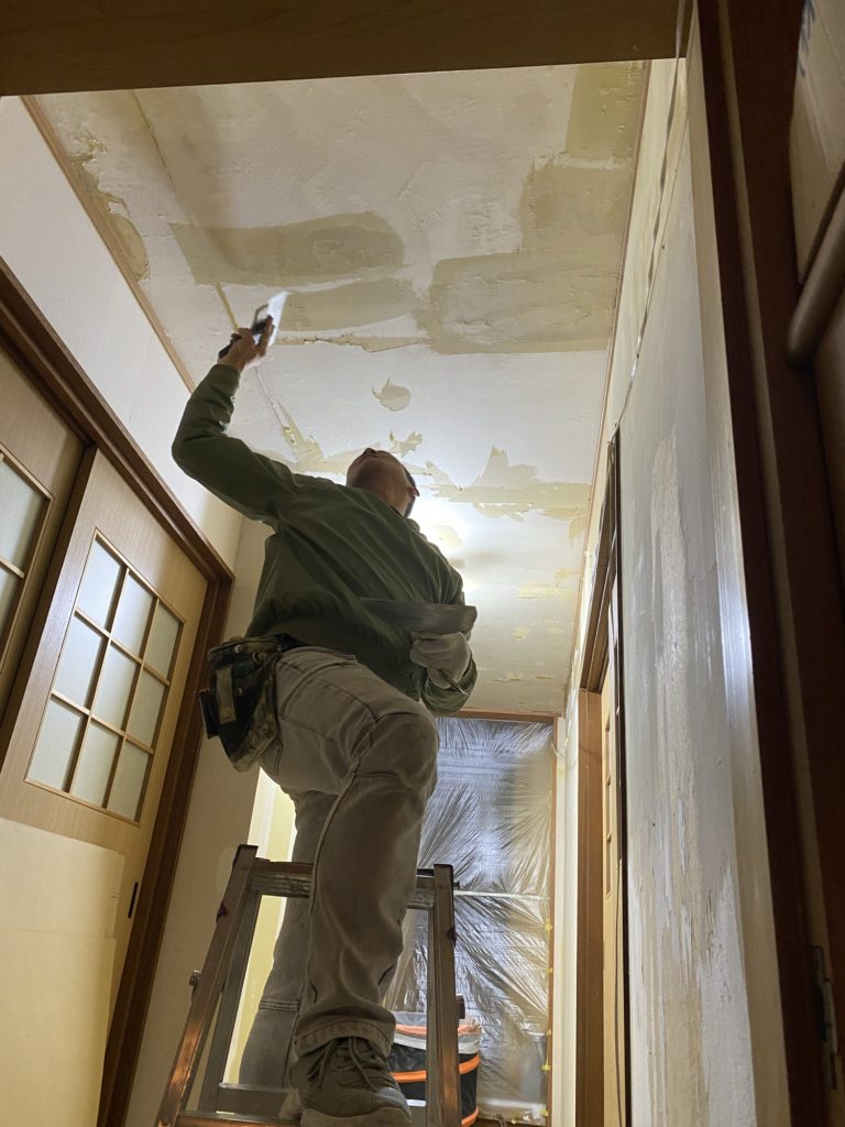 パテ塗〜クロスはり作業。