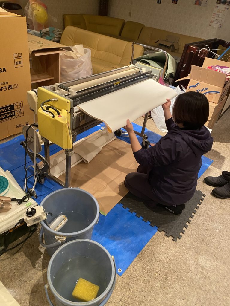 脱衣場, クロスはり作業中❗️