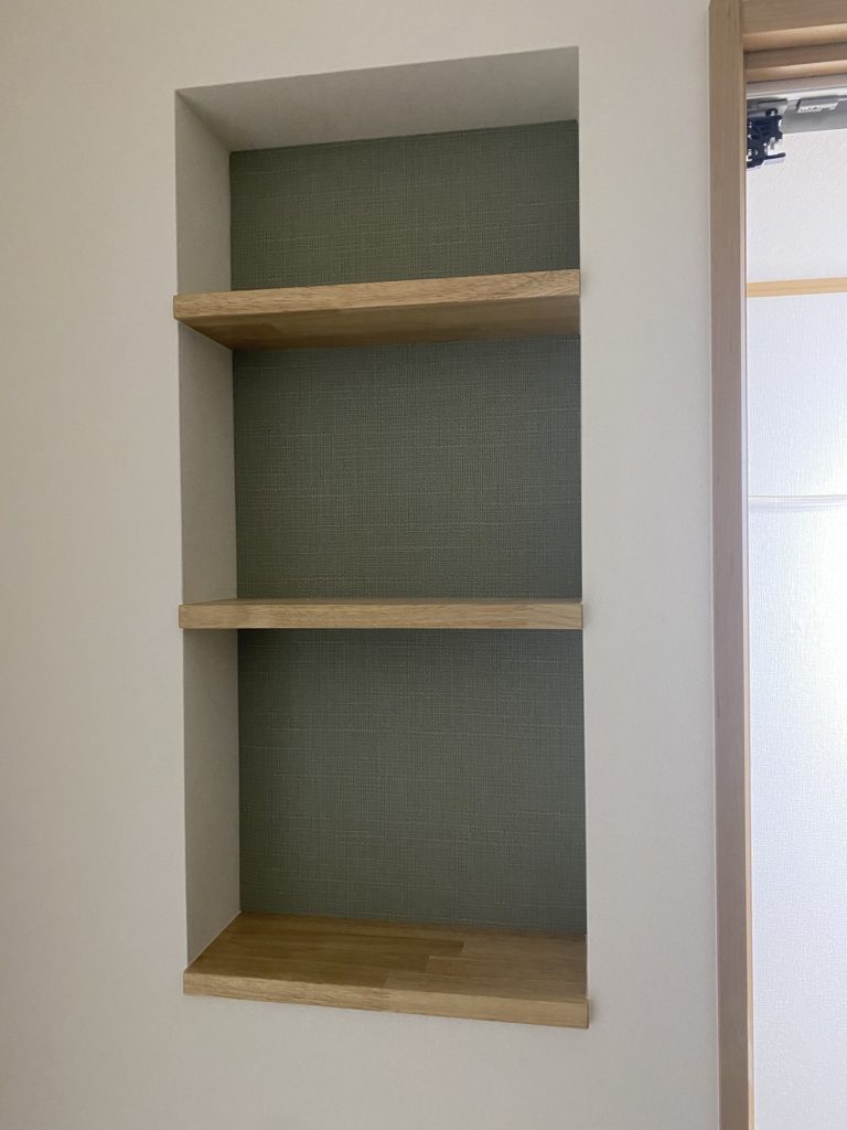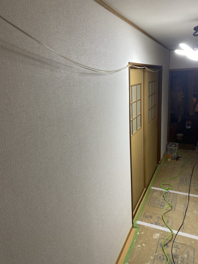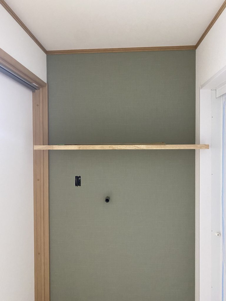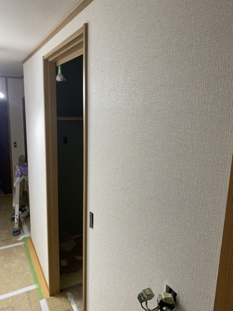 内装工事、脱衣場. 壁,天井,床 廊下. 壁,天井、クロス完了❗️