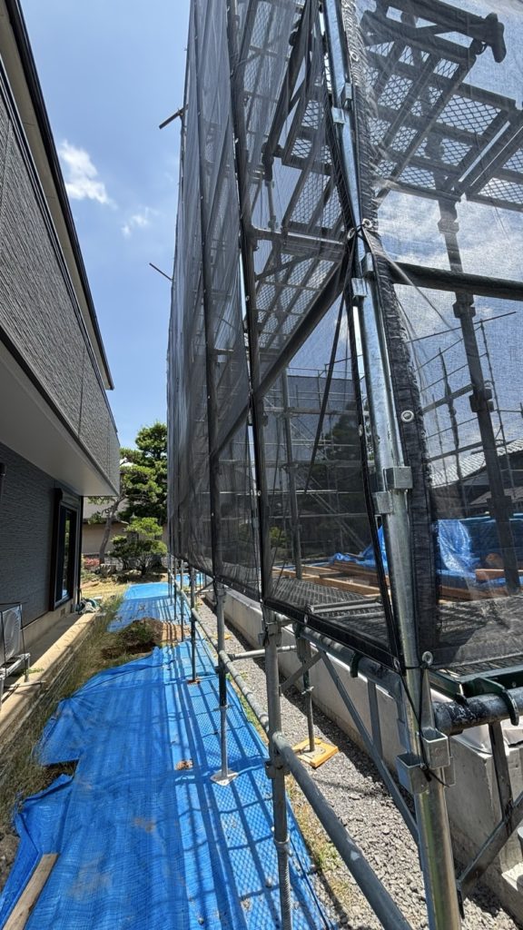 越前市木造新築工事現場. 先行足場組立おこないました。
