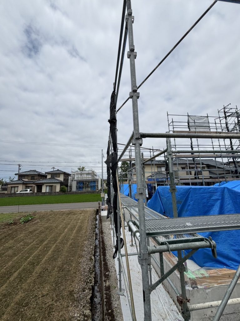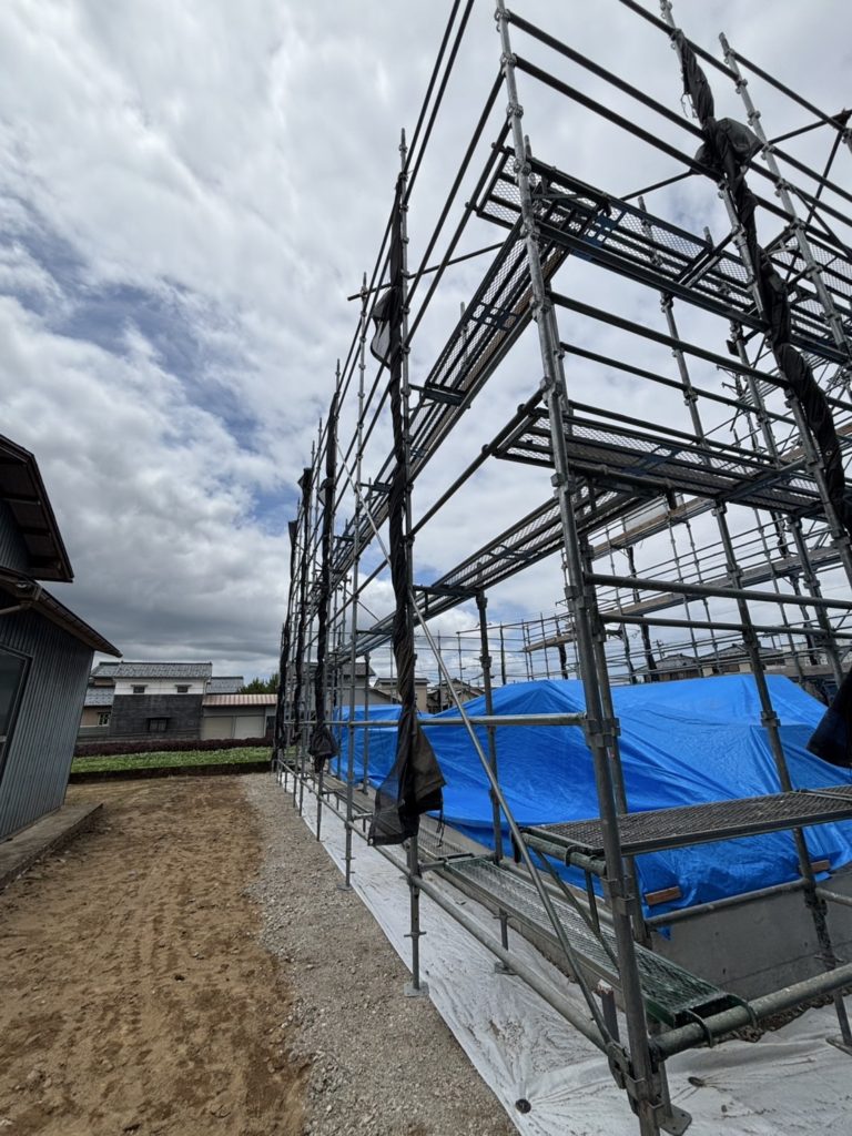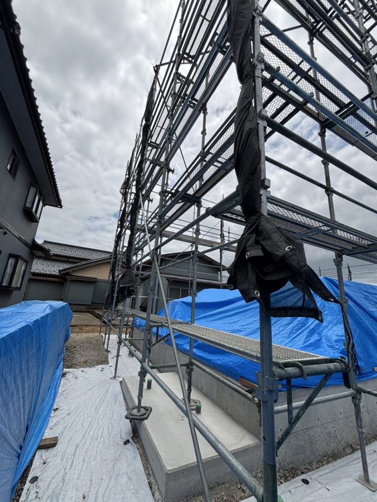 福井市木造新築工事現場. 先行足場組立おこないました。
