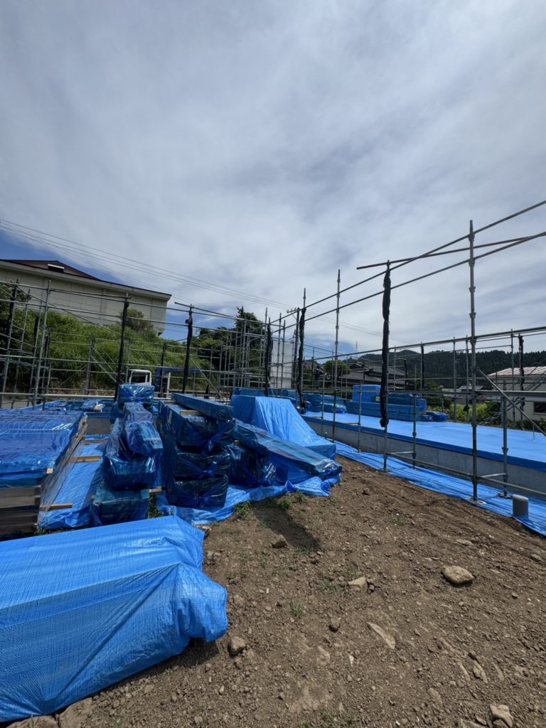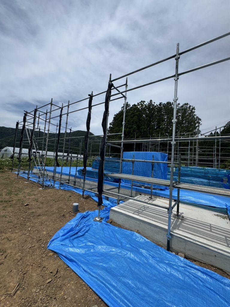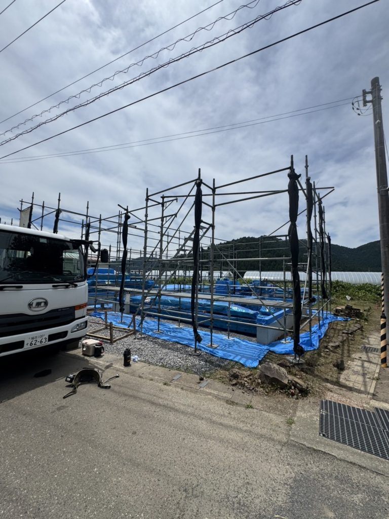 鯖江市木造新築工事現場. 先行足場組立おこないました。