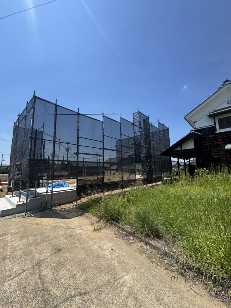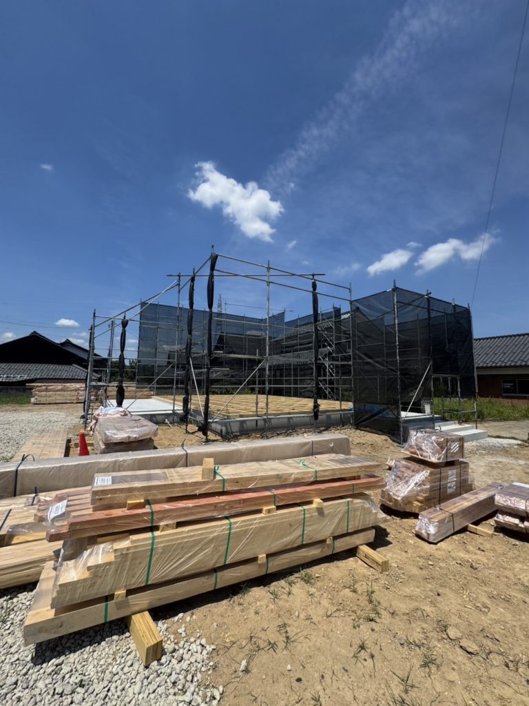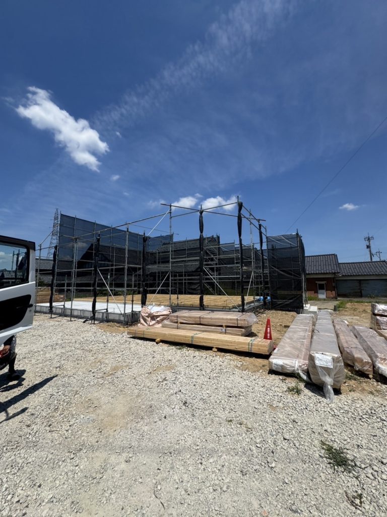 鯖江市木造新築工事現場. 先行足場組立おこないました。