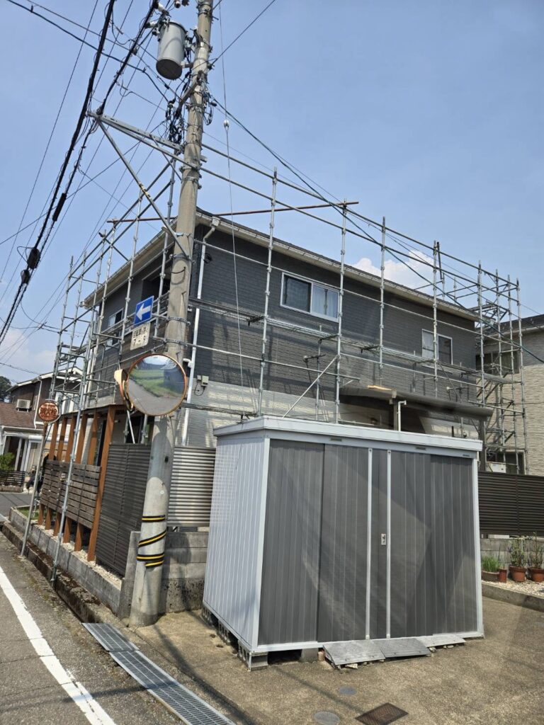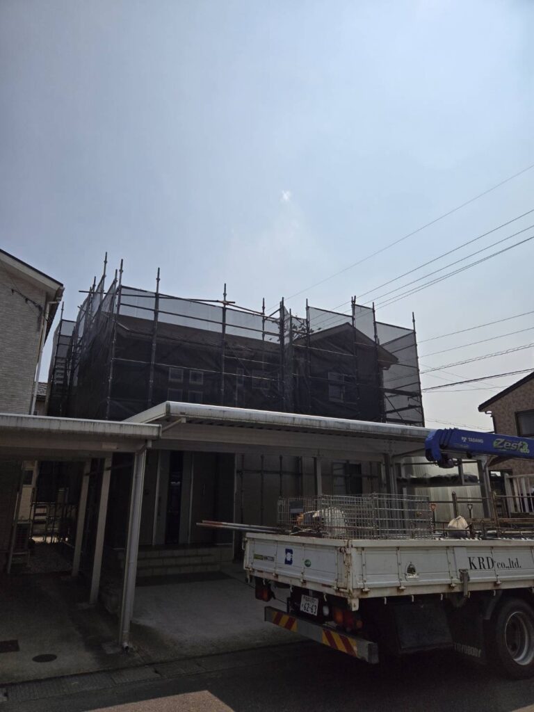 越前市外壁塗装工事現場. 足場組立をおこないました。