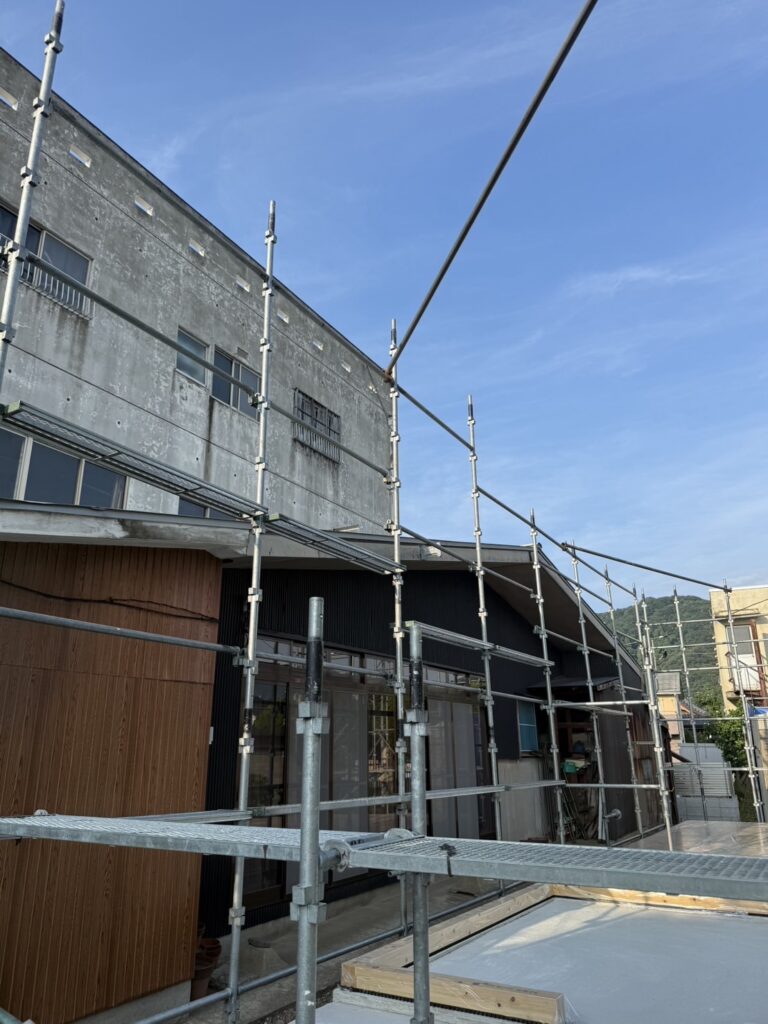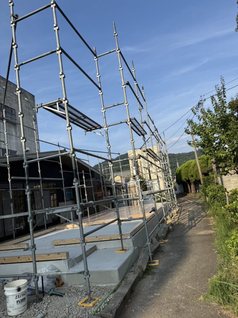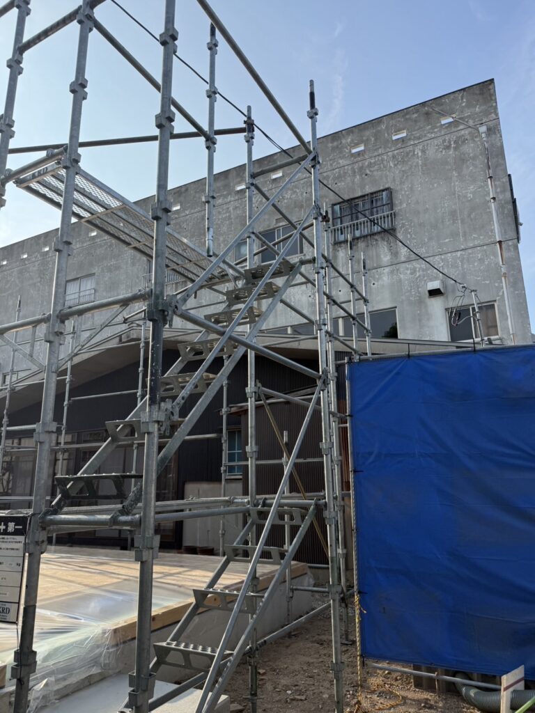 敦賀市木造新築工事現場. 先行足場組立おこないました。
