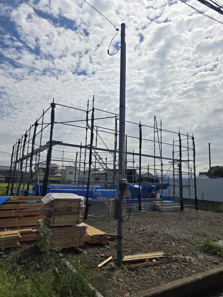 鯖江市木造新築工事現場. 先行足場組立おこないました。