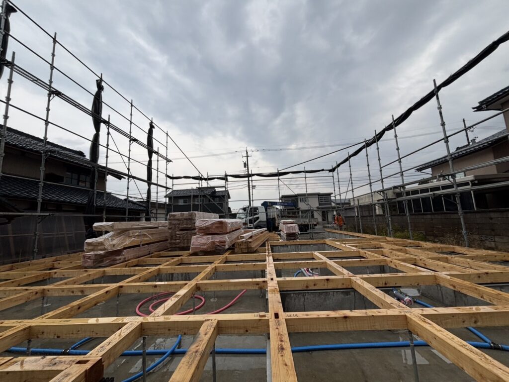 越前市現場、足場組立おこないました。