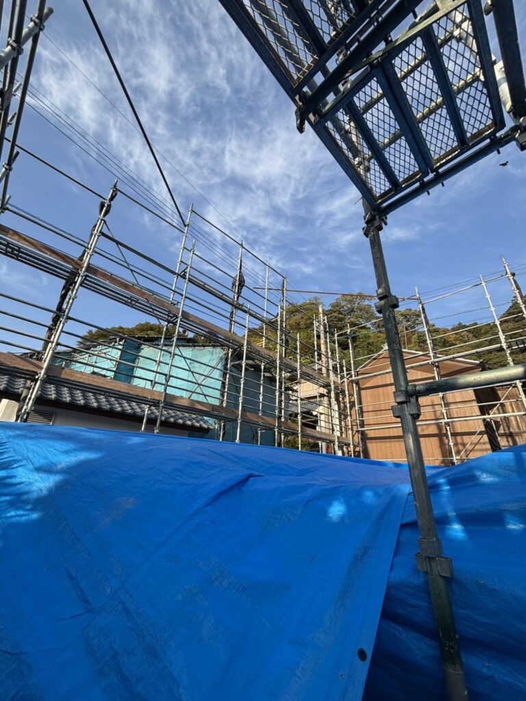 南条郡南越前町河野. 木造新築工事現場、先行足場組立おこないました。