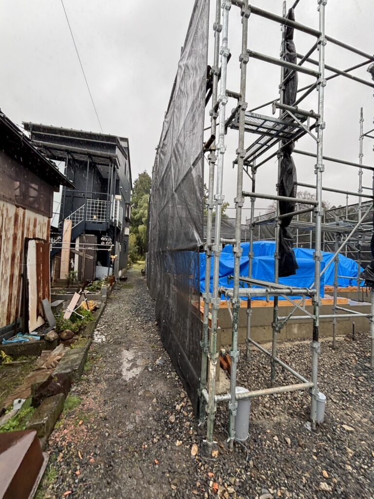 越前市木造新築工事現場. 先行足場組立おこないました。